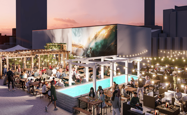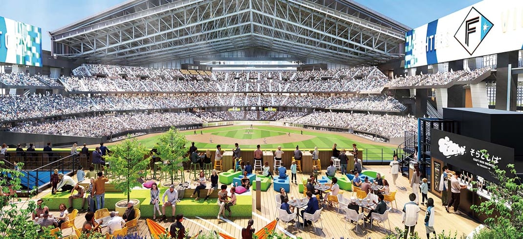 バックスクリーン上となる2階には、広大なフィールドを一望できるROOF TOP席もご用意。青空と天然芝を感じられる開放的な空間で、こだわりの一杯をお楽しみください。